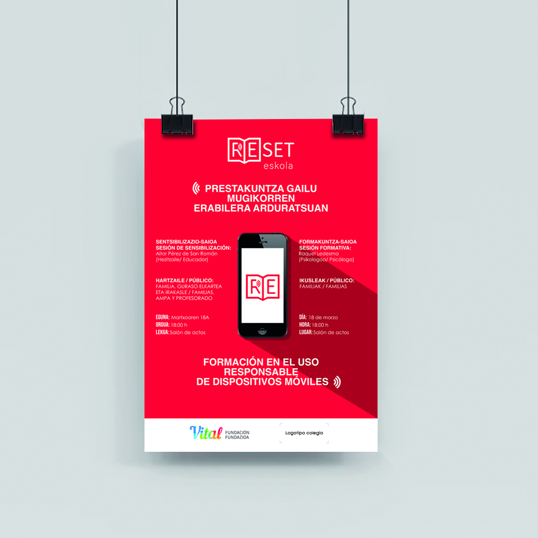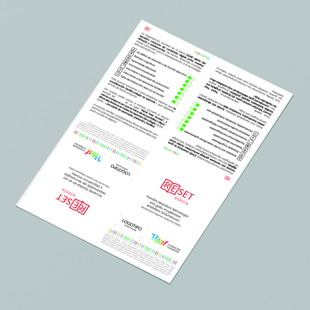 Otro logotipo creado por La Consulta Creativa para espacios libres de móviles que se suma a la anterior campaña de “Reset Eskola” patrocinado por Fundación Caja Vital.